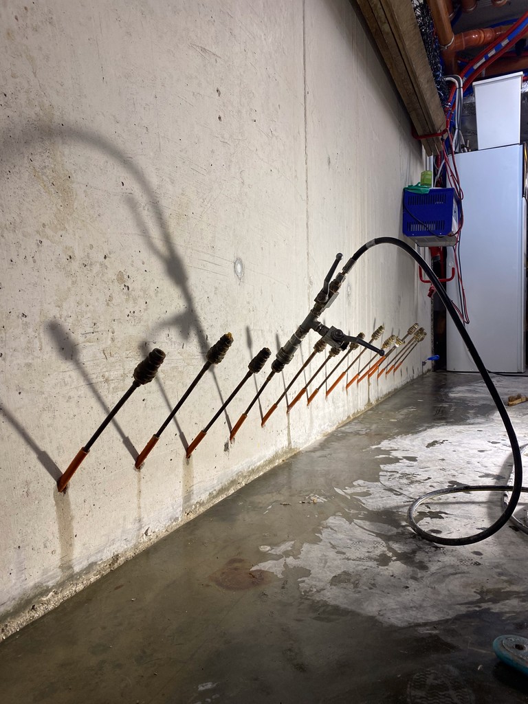 Met onze gespecialiseerde apparatuur boren we gericht in de constructie en injecteren we onder regelbare druk onze unieke gel, die het vocht buiten houdt.